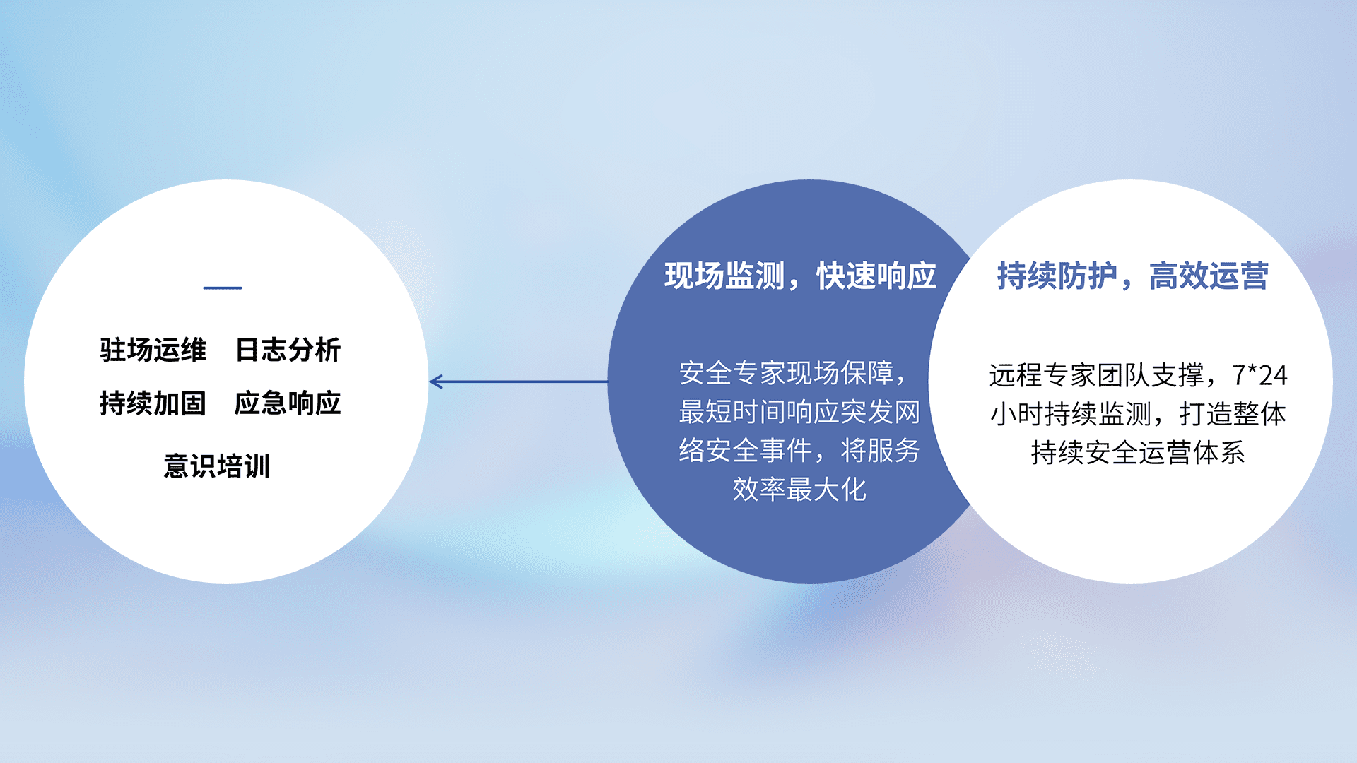7X24小时持续监测安全事件,保持安全策略有效性,降低资产脆弱性风险,,,,精准拦截黑客攻击,,,减少被黑客利用的机会,,第一时间遏制,,,,降低损失。。